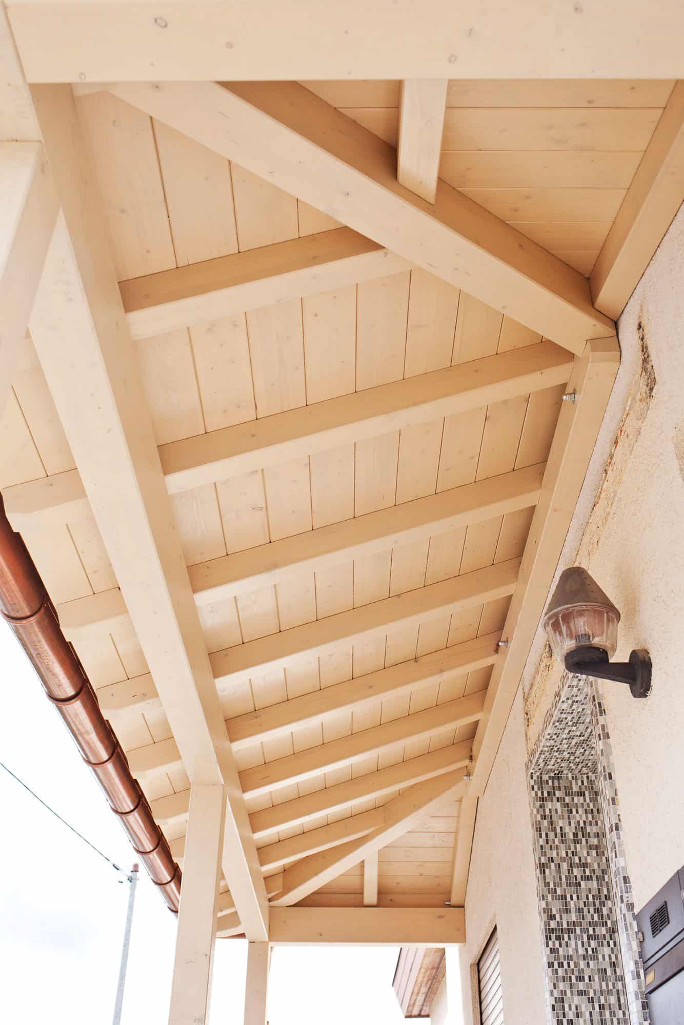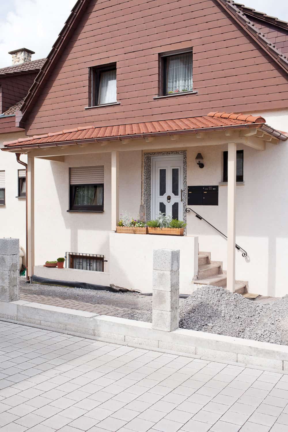 Für die Eindeckung, im Beispielfall eine traditionelle Ziegeleindeckung, gibt es verschiedene Materialien, beliebt sind auch Glaseindeckungen. Im Beratungsgespräch lässt sich die für Ihr Haus günstigste Lösung finden, die Ihnen einen trockenen Zugang in Ihren Wohnbereich verschafft.